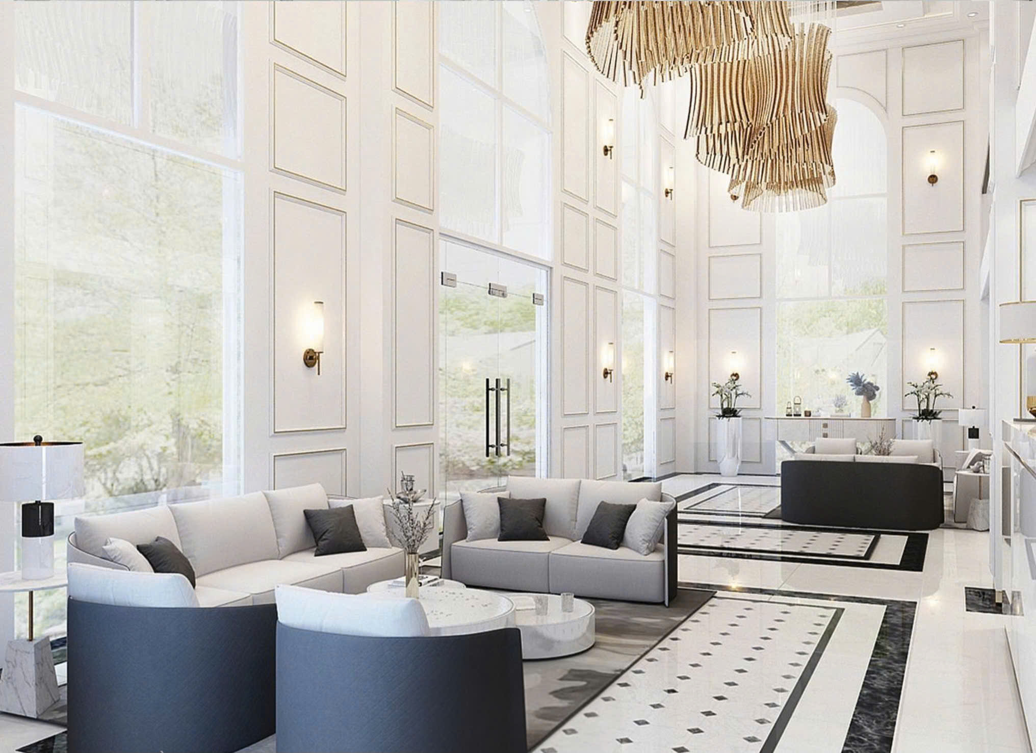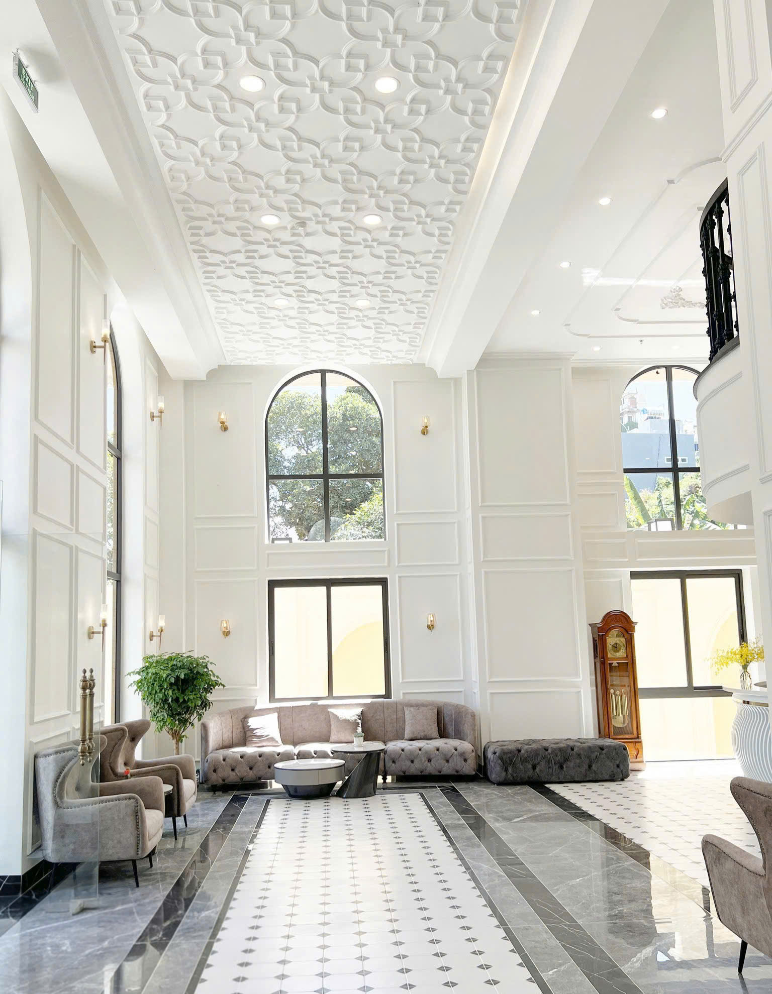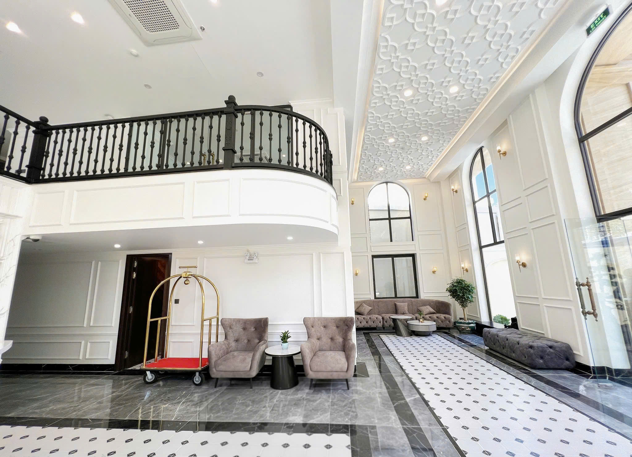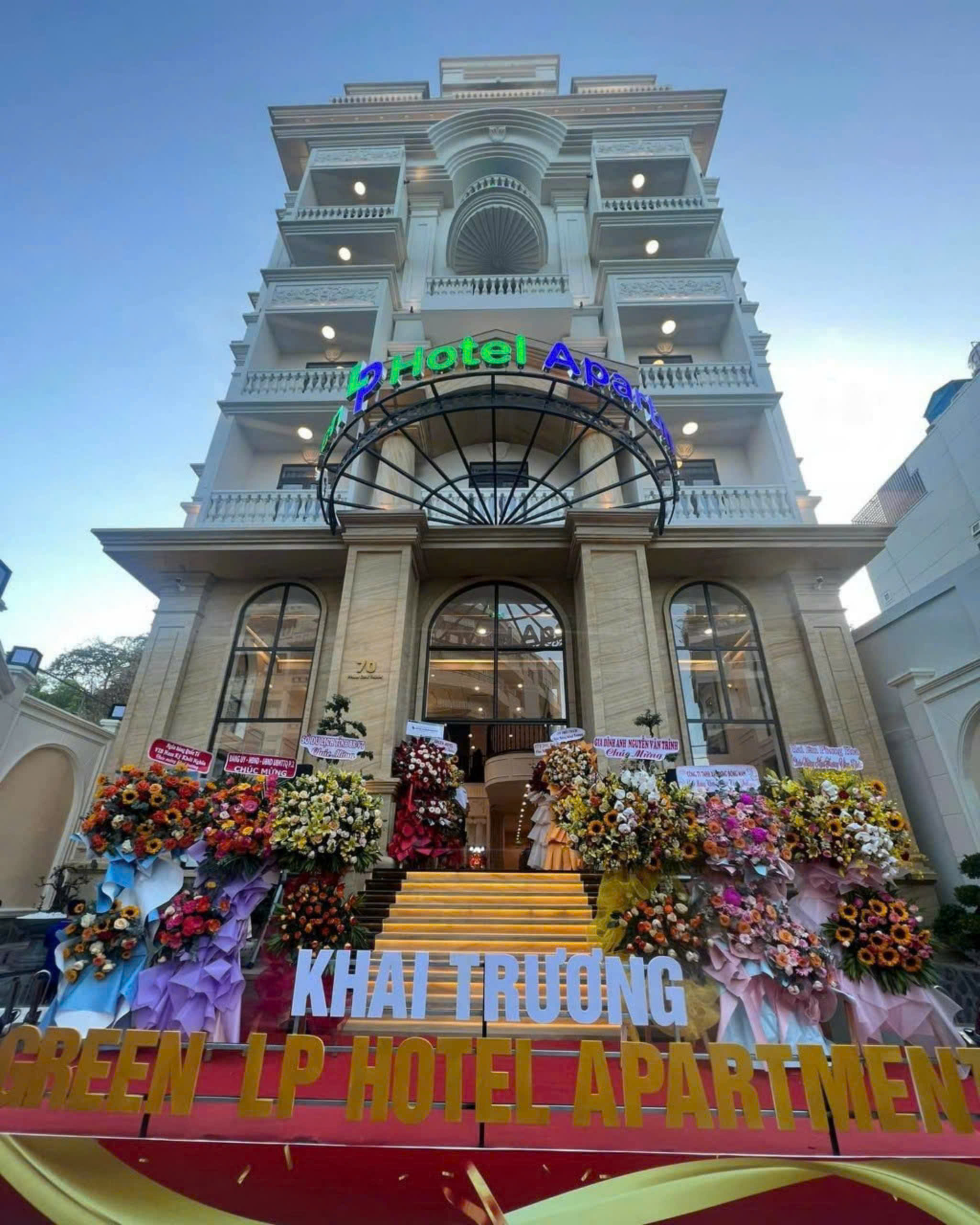 LP Hotel & Apartments nổi bật như một điểm nhấn kiến trúc sang trọng giữa không gian thiên nhiên xanh. Công trình gây ấn tượng mạnh với phong cách tân cổ điển, các chi tiết phào chỉ mềm mại tạo nên vẻ đẹp thanh lịch nhưng không kém phần bề thế.
